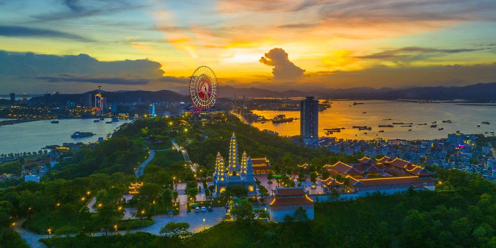 Explore Halong City Beyond the bay, Halong City has its own attractions, including Bai Tho Mountain, which offers 200m-high (656 ft) viewpoints, and Sun World Halong’s amusement park, home to games, coasters, and one of Southeast Asia’s biggest water parks. The city also boasts the architecturally striking Quang Ninh Museum and Library and a bustling night market at Halong Marine Plaza.